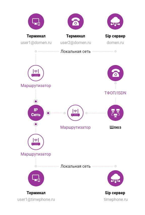 • Терминал. Это устройство, с которого можно звонить. Например, SIP-телефон, компьютер или смартфон.