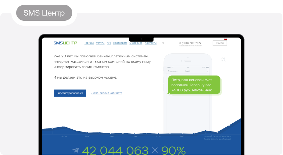 10. SMS Центр Компания появилась на рынке маркетинга более 20 лет назад. Отправлять SMS можно по всему миру, сообщение может содержать до 1000 символов. Из доступных опций — автоматические, персонифицированные, периодические рассылки, автоподстановка имени абонента, фильтрация контактов. Платформа предлагает оценить функционал сервиса в демо-версии кабинета на сайте. Есть опция интеграции с программами и CRM-системами. Стоимость сообщения — от 22 копеек.