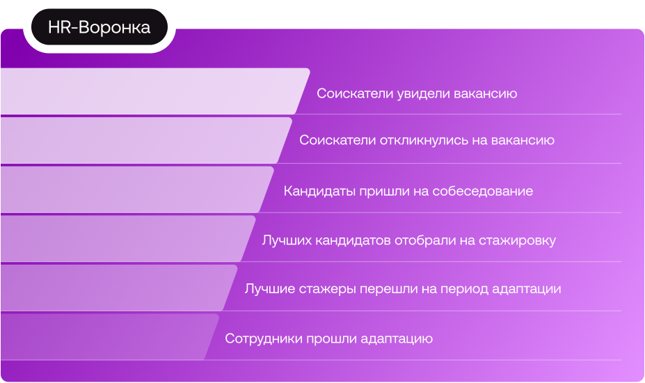 Воронка рекрутинга — это инструмент найма работников, лучше всего подходящих на свободные должности в организации. Рассказываем об этапах воронки, а также о том, как бизнесу анализировать процесс найма и автоматизировать его с помощью роботов-рекрутеров.